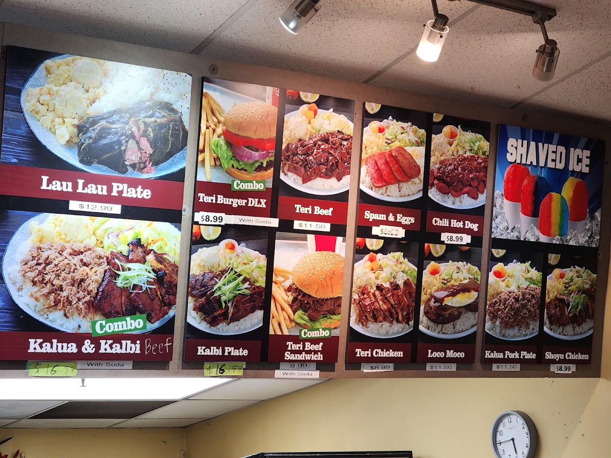 - Plate Lunches and Combos: Includes various combinations such as Chicken and Beef Teriyaki, Loco Moco, Kalua Pork, Shoyu Chicken Plate, BBQ Beef and Chicken Katsu Lunch Combo, and other meat-focused plates.