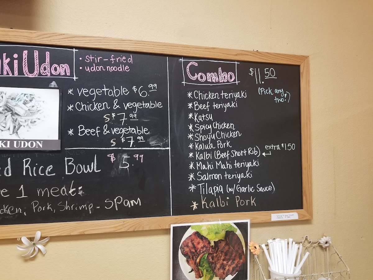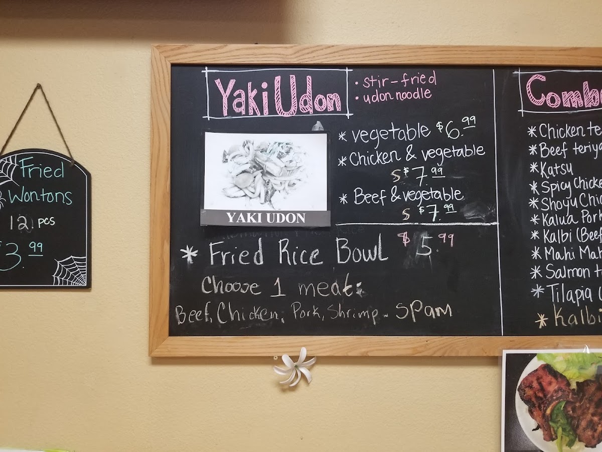 - Noodles: Includes options such as Saimin, Fried Saimin, Wonton Saimin, Teriyaki Beef Saimin, Spicy Ramen with Egg, Udon, and Yaki Udon. These dishes typically offer a mix of broth-based and stir-fried preparations.